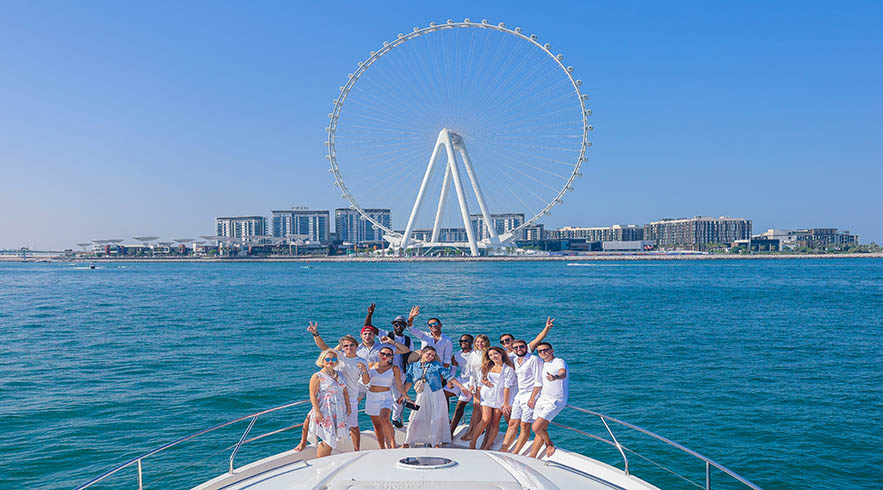 While you get full access to the yacht, do not forget to take in the panoramic views of Dubai’s iconic landmarks during the cruise. This includes Dubai Marina, Dubai Harbor, Bluewaters Island, Palm Jumeirah, Ain Dubai, Jumeirah Beach, Burj Al Arab, Royal Palaces, and The Sheikh’s Private Island.
